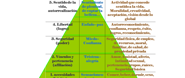 Leer MásLas necesidades del ser humano son variadas y complejas, formando todo un sistema que interacciona. Abraham Maslow lo dejo reflejado en la pirámide que lleva su nombre. Lo que no aparece en la pirámide es el detector emocional de cada necesidad. Y sin embargo debajo de cada emoción hay una necesidad. La clave de la gestión en Educación Emocional es llegar a descubrir precisamente cuál es la necesidad que se encuentra debajo de cada emoción.