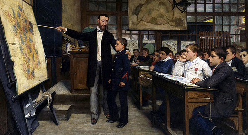 Leer MásCon esta entrada contesto a una de Gregorio Luri que tiene la misma imagen que esta, me he tomado la libertad de reproducirla. Primero he de decir que la entrada de Luri me ha parecido lúcida e interesante, y también nostálgica de un mundo que ya no existe. Quizá por ello negativa sobre las posibilidades de la Educación actual, que Luri encuentra peligrosamente psicologizada en contraste con esa escuela de la que venimos. La escuela de finales del XIX es una escuela al servicio del patriotismo. «La escuela republicana francesa, por ejemplo, estaba para formar o moldear, si se quiere, ciudadanos franceses». Desde esta finalidad, los medios resultan claros y sencillos: «conocer las producciones artísticas de la patria, sus grandes hombres, disponer de un canon de autores literarios de referencia, etc.». En el período final del siglo XIX con la omnipresente y omnipotente presencia del Estado-Nación las cosas para la Escuela resultan claras y […]